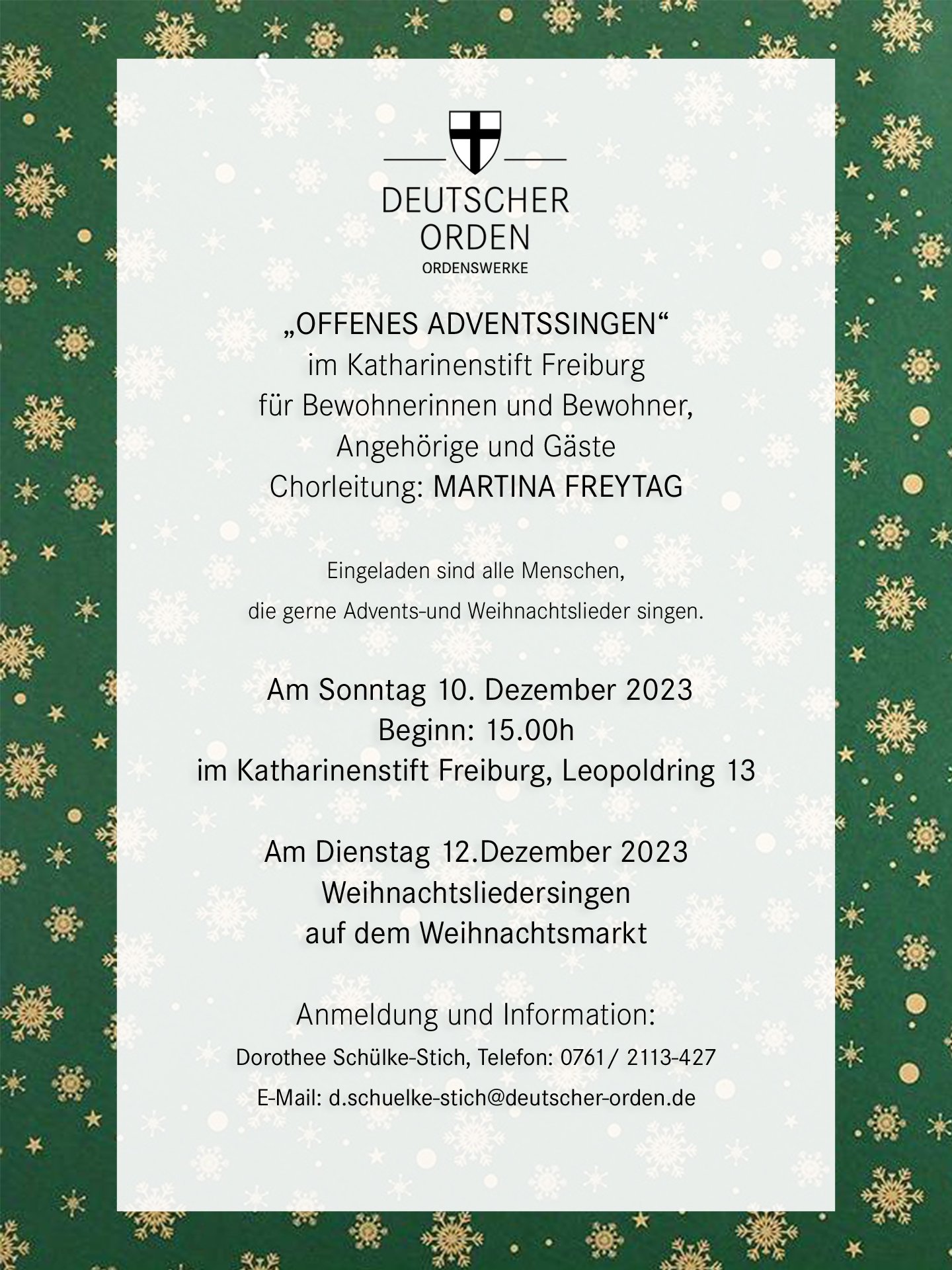 „Offenes Adventssingen“ im Katharinenstift Freiburg für Bewohnerinnen und Bewohner, Angehörige und Gäste.